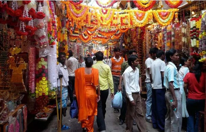 Begin your journey at this vibrant market, known for its intricate embroidery and traditional Indian